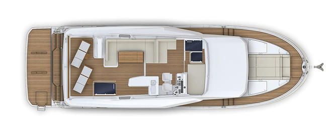 Desde su potente casco de desplazamiento hasta las elegantes líneas que le confieren una presencia atemporal en el agua, el Grand Trawler 63 equilibra la elegancia y la funcionalidad. Desarrollado en colaboración con MICAD Naval Architects, su casco ofrece una notable eficiencia en el consumo de combustible, con una autonomía de hasta 1.000 millas náuticas a 9 nudos con un 10 % de reserva de combustible. Las características opcionales, como el flybridge modulable gris y la barbacoa de estilo tejano, garantizan que cada momento al aire libre sea memorable, ya sea fondeados o en navegación.