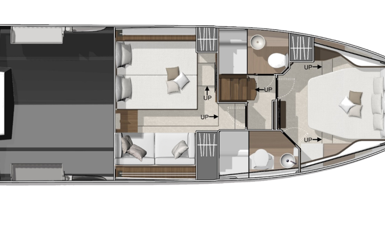 Los materiales de alta calidad utilizados en todo el interior proporcionan una experiencia cómoda a bordo. La cabina de mando protegida cuenta con bancos para tres (3) pilotos y copilotos, y una cocina totalmente equipada a nivel de cubierta que conecta a la perfección con la zona de estar de la cabina de popa. Bajo cubierta hay dos (2) amplios camarotes con baños privados, cada uno con duchas separadas, que ofrecen alojamiento para hasta cinco (5) personas. El Wellcraft 44 Explorer cuenta con un abundante espacio de almacenamiento para garantizar que todo se mantenga ordenado y organizado, lo que lo convierte en el barco definitivo para aventuras inolvidables.